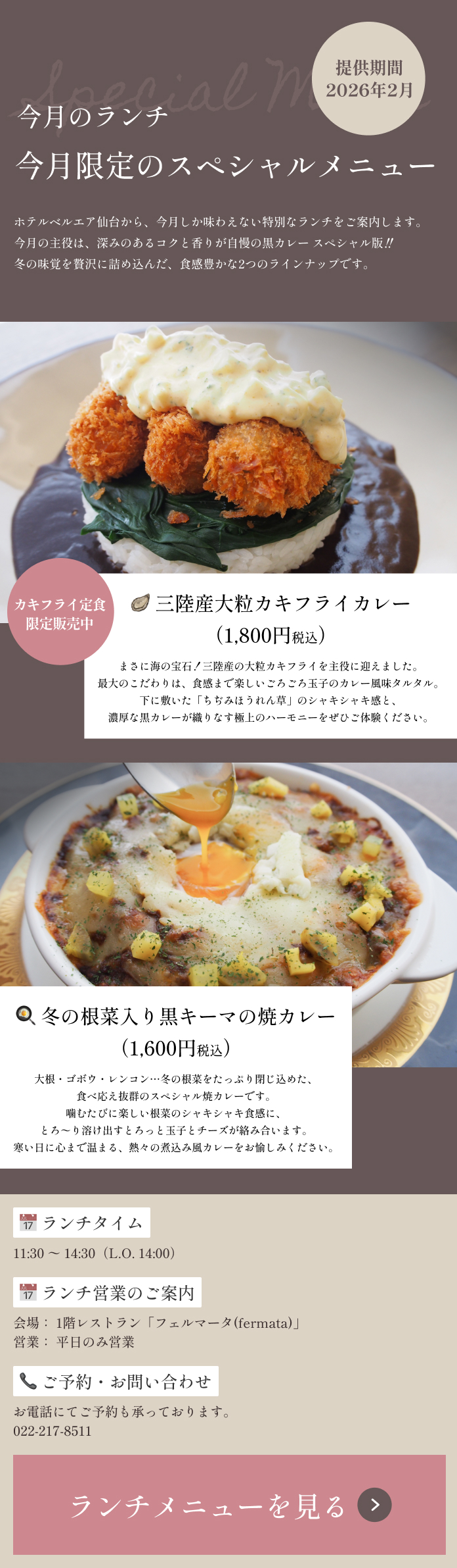 | 2026.2.2 | 2月3日(火)・2月4日(水)ランチ営業休業のお知らせ |