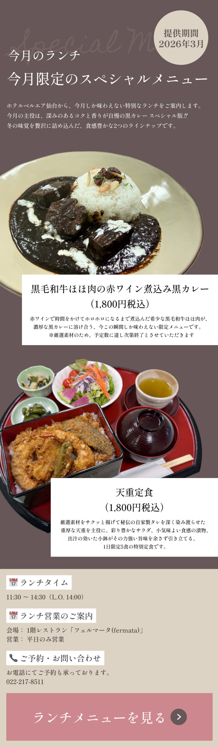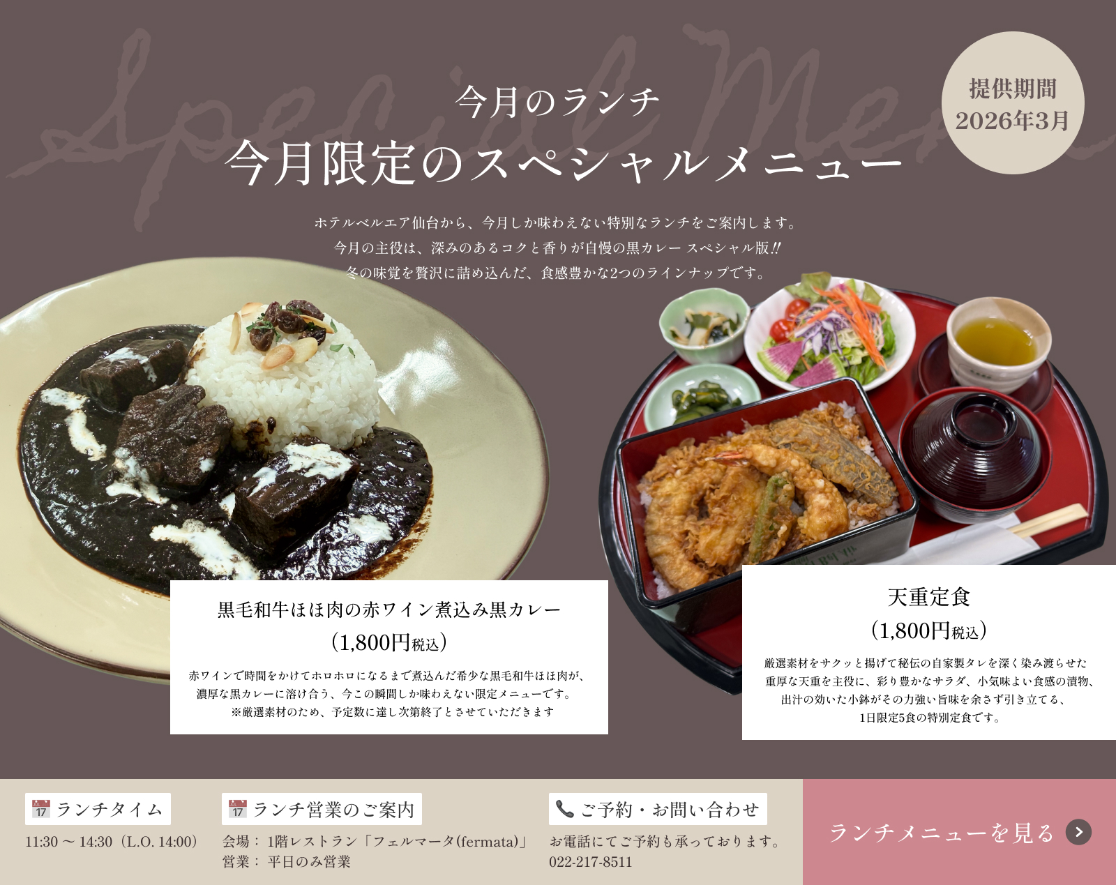 | 2026.2.13 | 【2026年春】ホテルベルエア仙台「歓送迎会プラン」のご案内 |