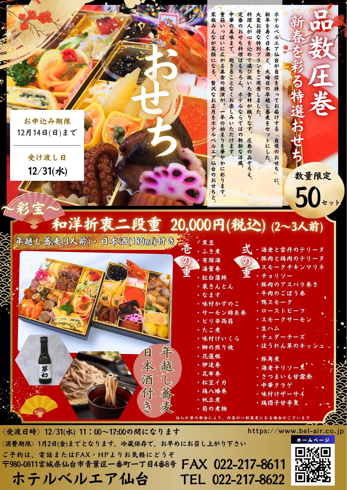 ホテルベルエア仙台が自信を持ってお届けする、贅を尽くした自慢の「おせち」で、華やかな新年をお迎えください。