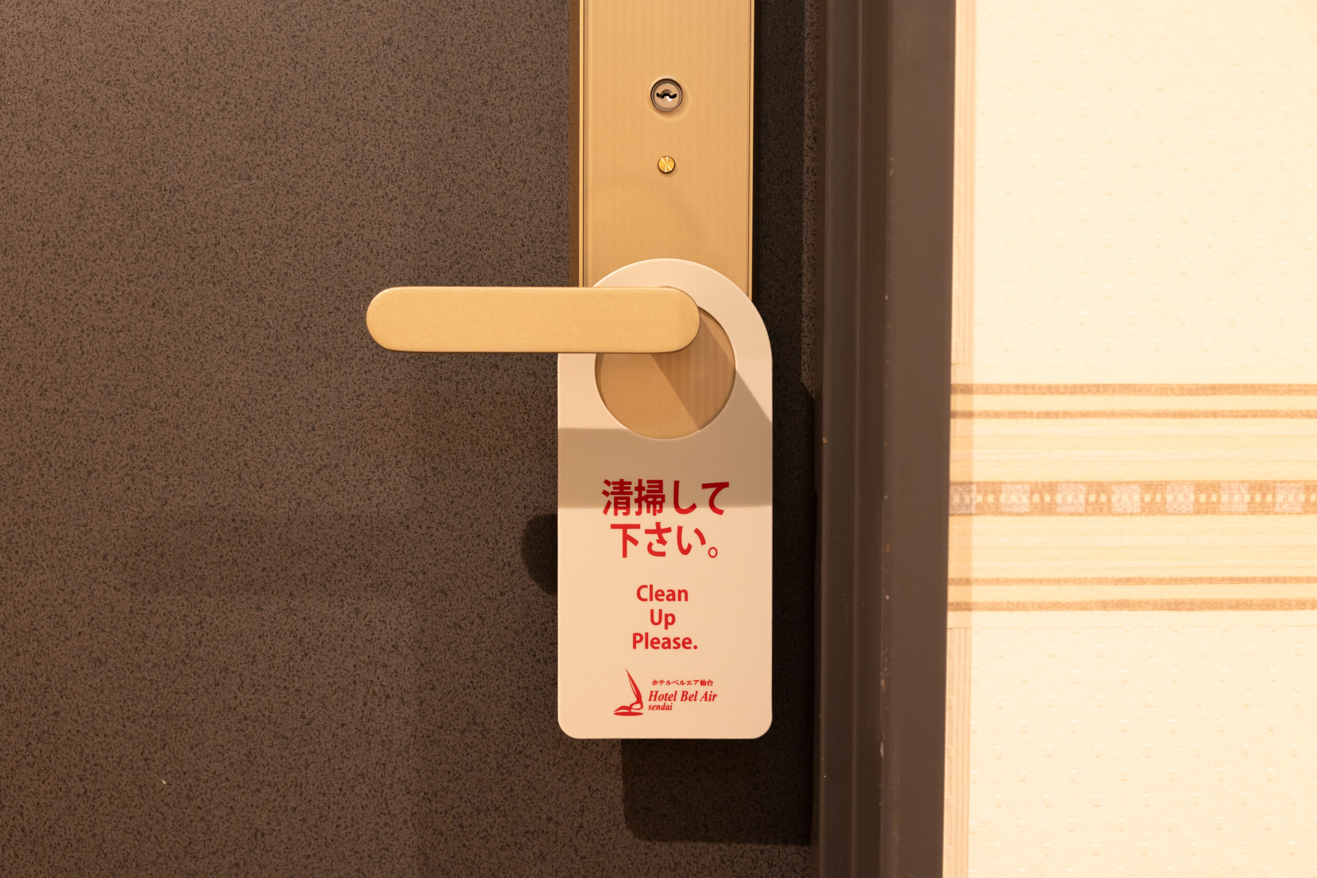 清掃をご希望の場合 当日正午(12:00)までに、客室ドア外側のドアノブに「清掃希望札」をお掛けください。心を込めてお掃除させていただきます。